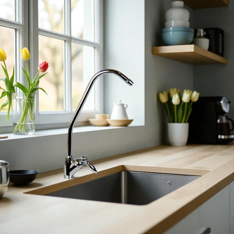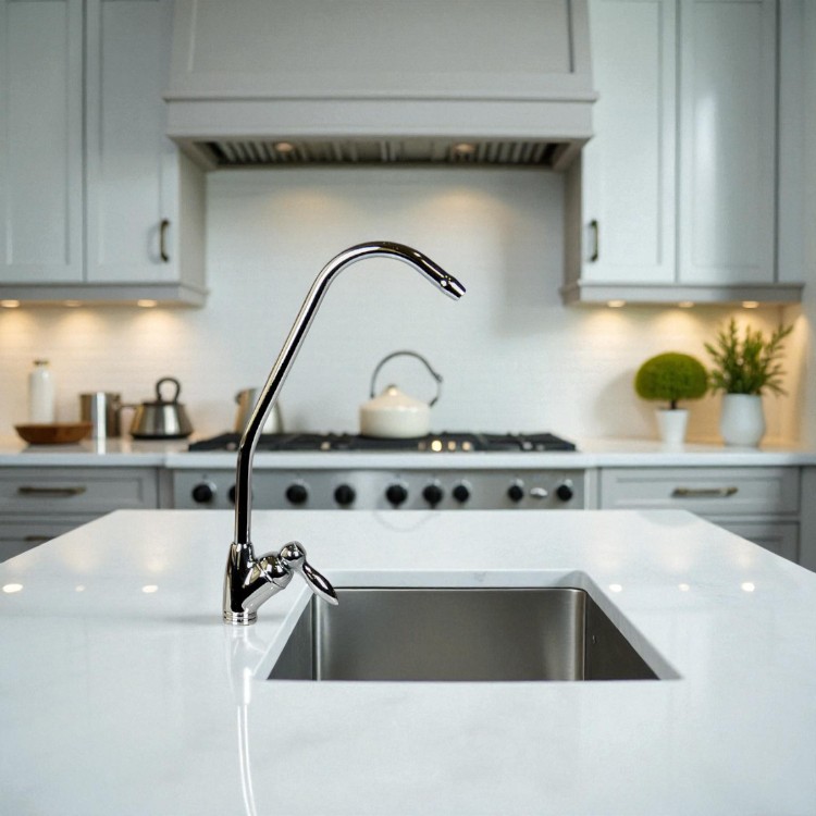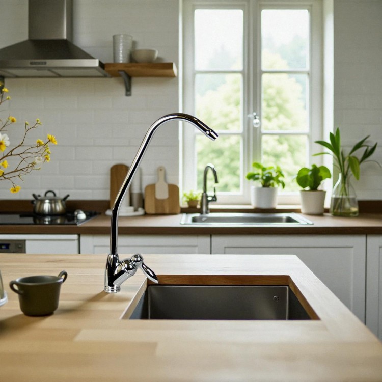 Кран монтируется непосредственно в мойку или столешницу рядом с основным смесителем. Используется исключительно для подачи очищенной воды из фильтра, что делает его идеальным решением для квартир, домов и офисов в Одессе и по всей Украине.